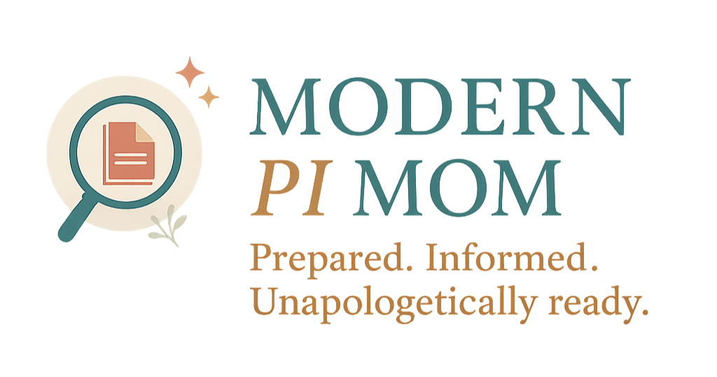 Not Legal Advice: Modern PI Mom provides informational and organizational resources only. Nothing on this site, or in any download, should be interpreted as legal advice or a substitute for professional counsel.